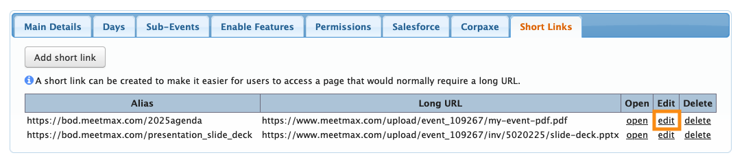 - Step 5. Locate the original PDF’s short link. Click Edit: