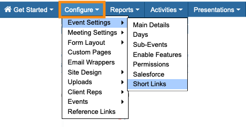 - Step 4. Now, head back to the Configure tab. Choose Event Settings, then Short Links: