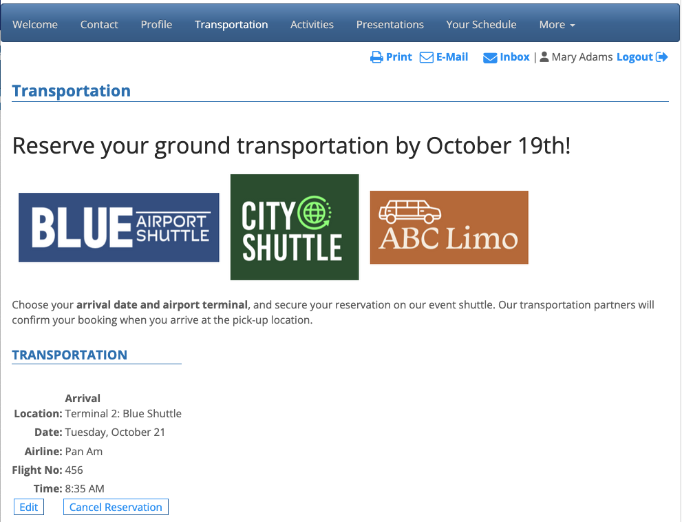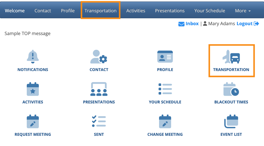 Your Attendees will access the Transportation page when they log into MeetMax: