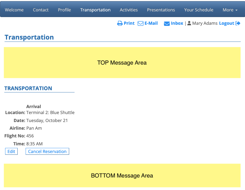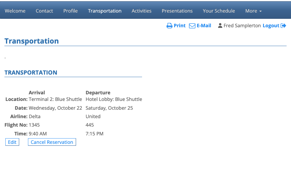 You’ll then be able to preview the Transportation page as Attendees will see it:
