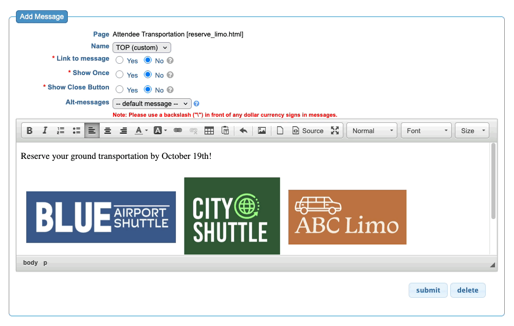 | You can also use the Menu Editor to control how the Transportation page displays for Attendees. |