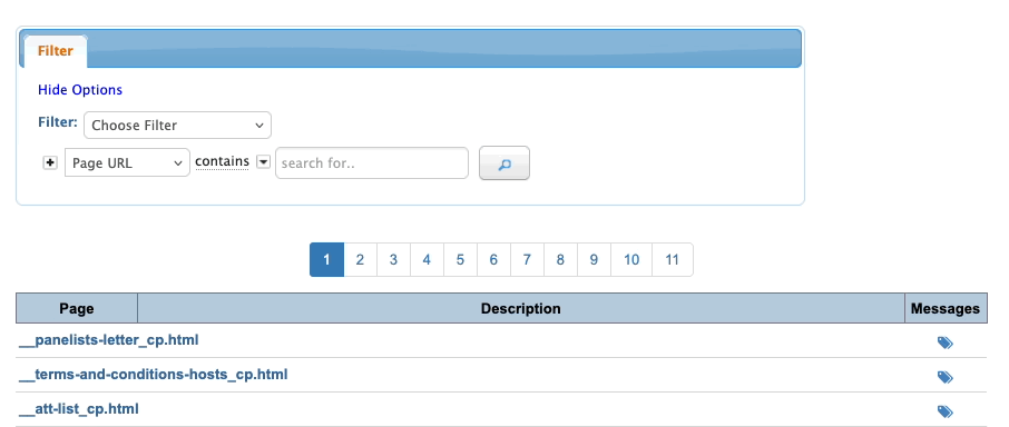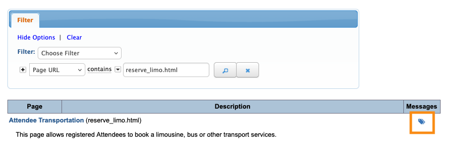 - Step 2. On the Messages page, filter for Page URL. Enter reserve_limo.html and click the Search button: