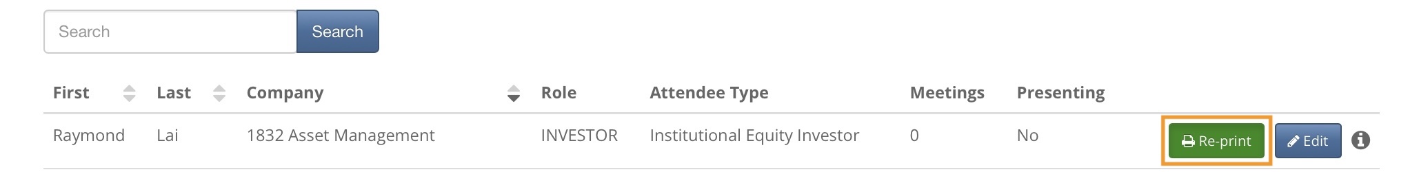 - Step 3. Click the Re-print button to send the updated badge to the badge printer: