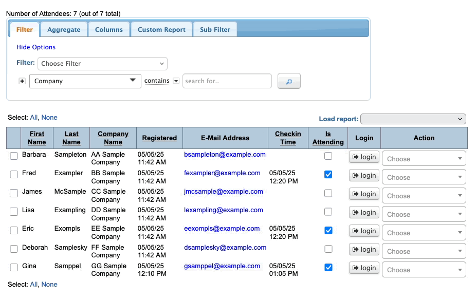 You’ll use your main MeetMax account to run periodic check-in reports.