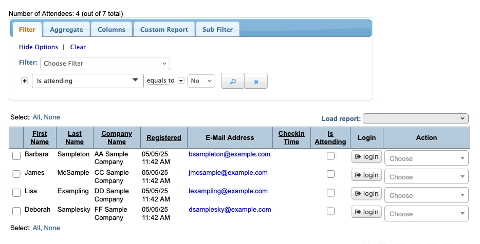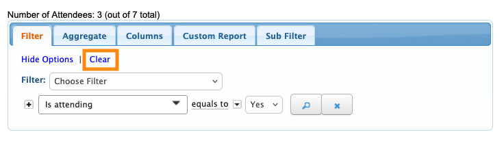 - Step 1. In the Attendee List, use the same Is Attending filter as above. Set it to Yes.