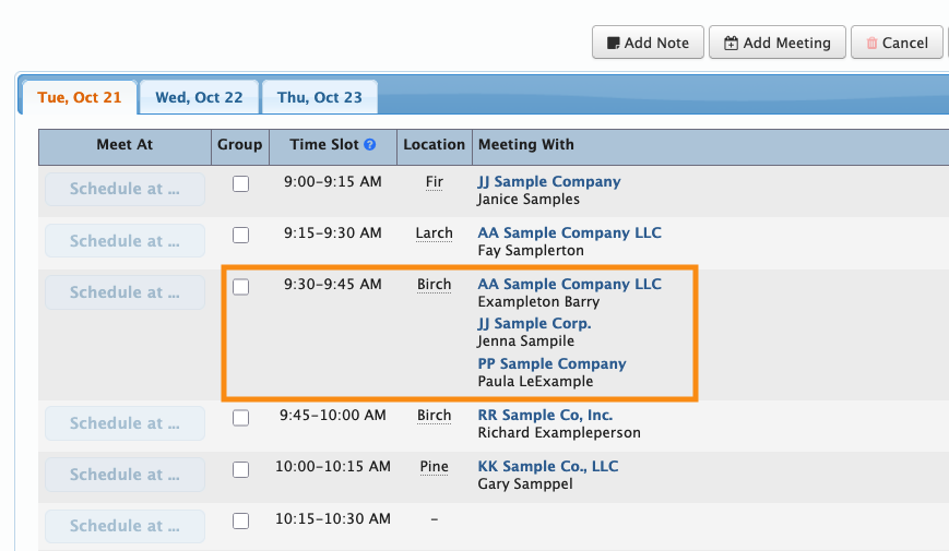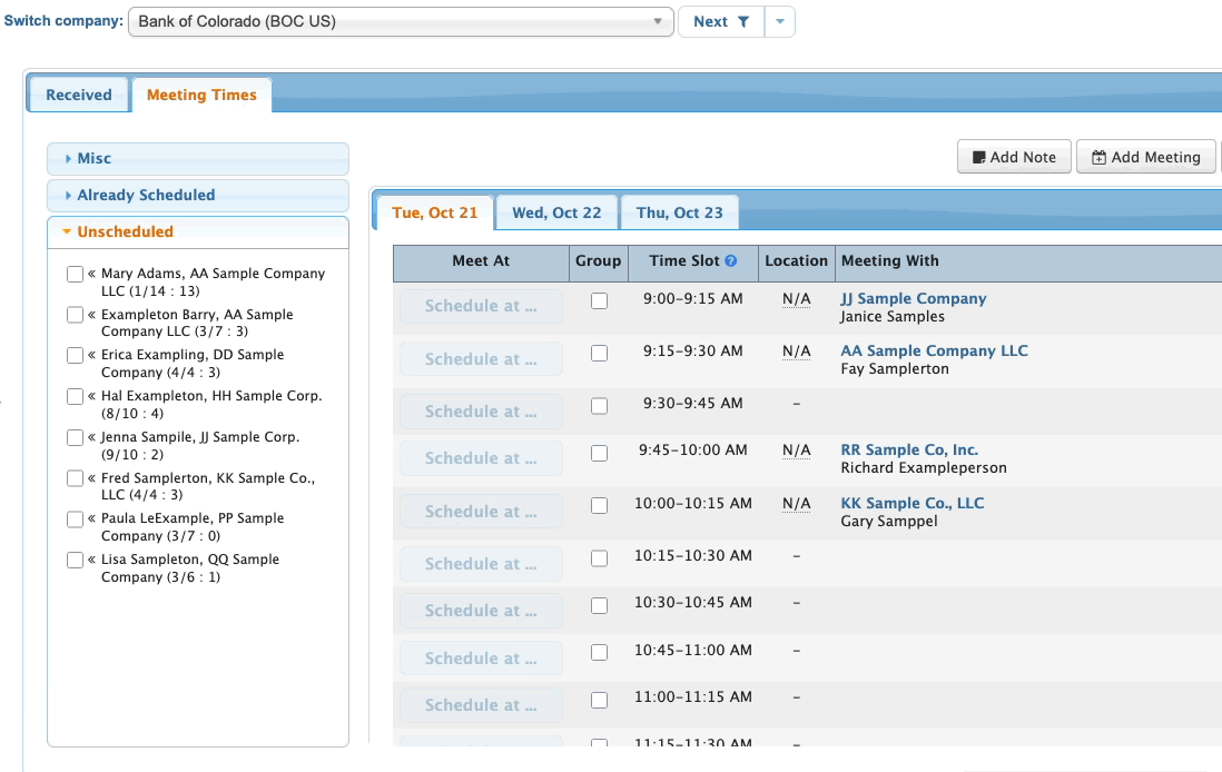If Attendees are the Targets in your event, you’d start from the Attendee List instead. - Step 2. Filter the list to find the Company you need to schedule meetings for.