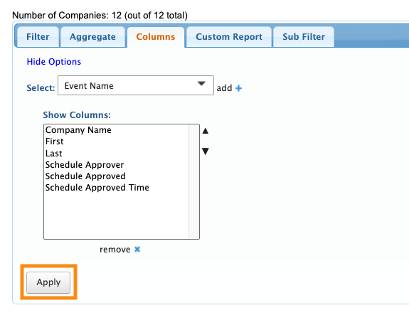The list you start from depends on which role has Approver permission at your event. In this example, Companies are schedule approvers, so we’ll start from the Company List.