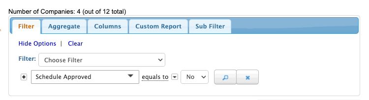 Your event might have slightly different names for these columns. - Step 3. Now, head to the Filter tab. Set the filter by Schedule Approved, and choose No: