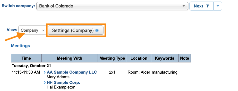 - Step 1. Start in either the Attendee or Company List. (We’ll show the Company List here, but the process is the same if you start in the Attendee List.)