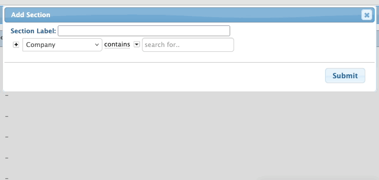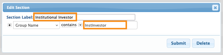 - Then, set the filter criteria that will include people in this category. Click Submit to save: