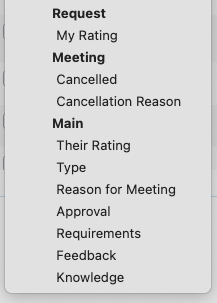 - When you choose the form field for your filter, keep in mind that meeting request categories recognize the field’s Value.