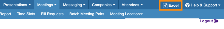 The Meetings List on your screen won’t change. The column updates only appear in an exported spreadsheet. - Step 5. Head to the top right corner of the page and click the Excel link: