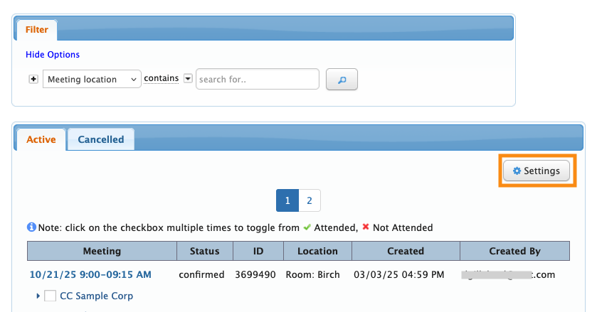 - Step 5. All Meeting Times pages now display the Info column, which shows participant counts: