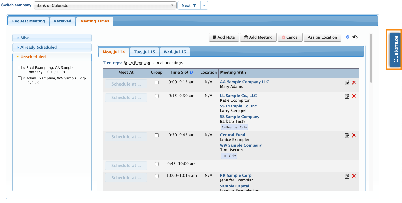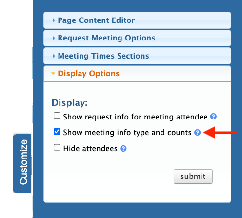 - Step 3. On the Meeting Times page, head to the right edge and click the Customize button:
