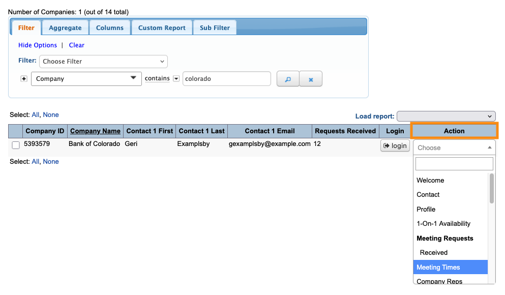 - Use the Action menu to choose Meeting Times: