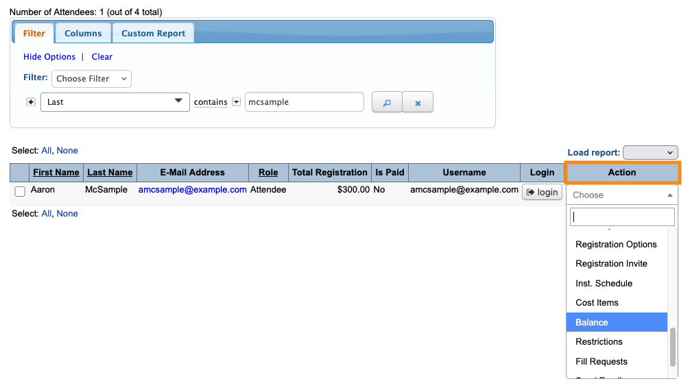 - Step 2. Filter the list to locate the person you need to update. Use the Action menu to choose Balance:
