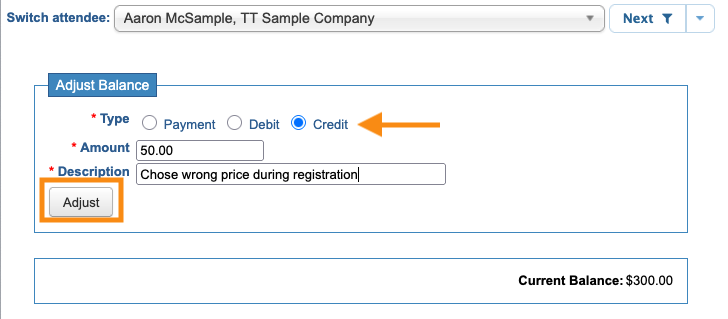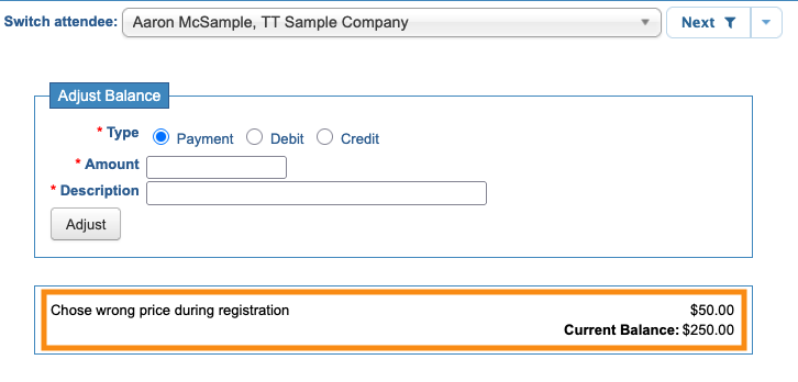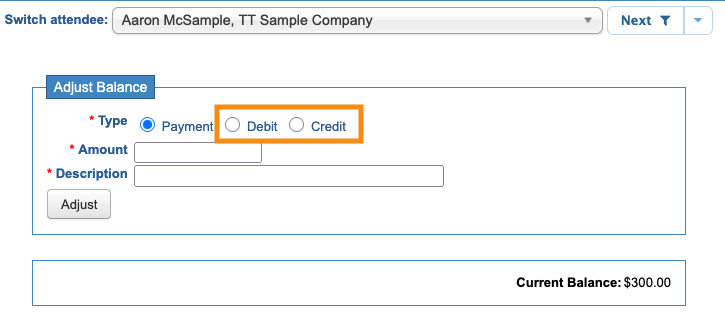 - Step 3. On the Adjust Balance page, you’ll see the participant’s current invoice balance.