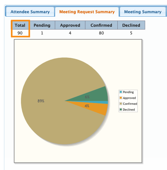 - Step 2. On the Summary page, you’ll see the current total number of meeting requests for your event. This page updates automatically as new requests are submitted: