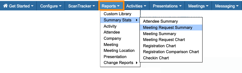 - Step 1. Head to the Reports tab. Choose Summary Stats, then Meeting Request Summary: