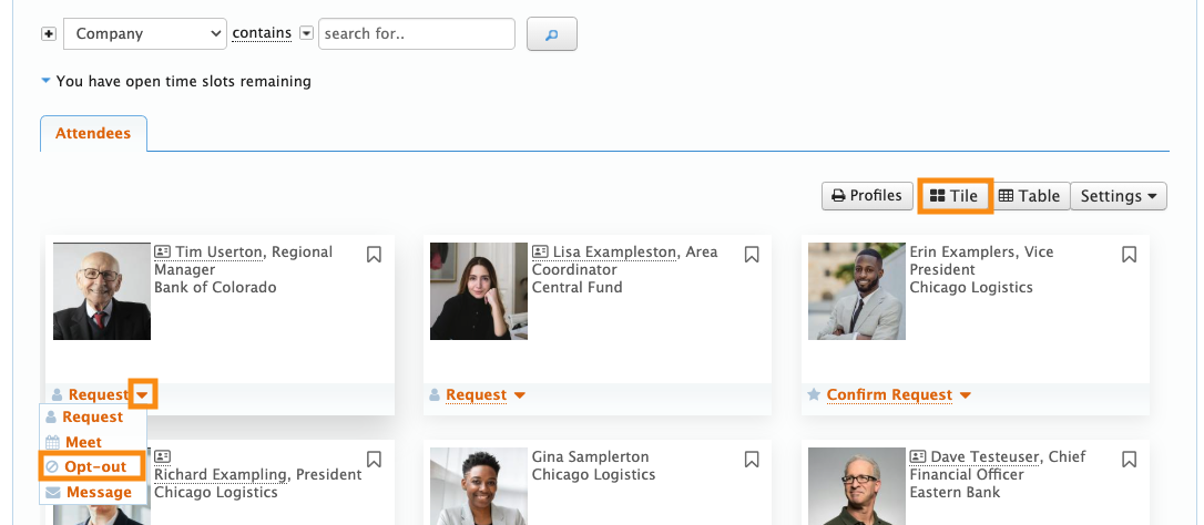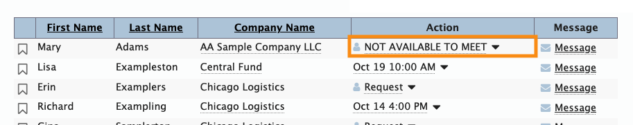 In the example above, Mary Adams opted out of meeting with Tim Userton.