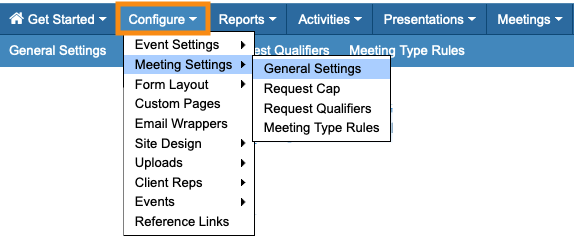 - Step 1. Head to the Configure tab. Choose Meeting Settings, then General Settings: