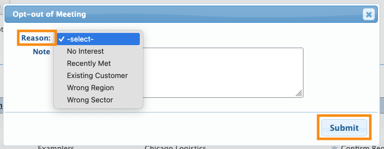 After choosing Opt-out, the Attendee sees a pop-up, where they’ll choose their reason for not wanting to meet with this Target: