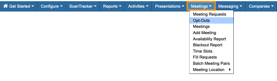 Once there’s at least one opt-out at your event, you can head to the Meetings tab and see the Opt-outs option: