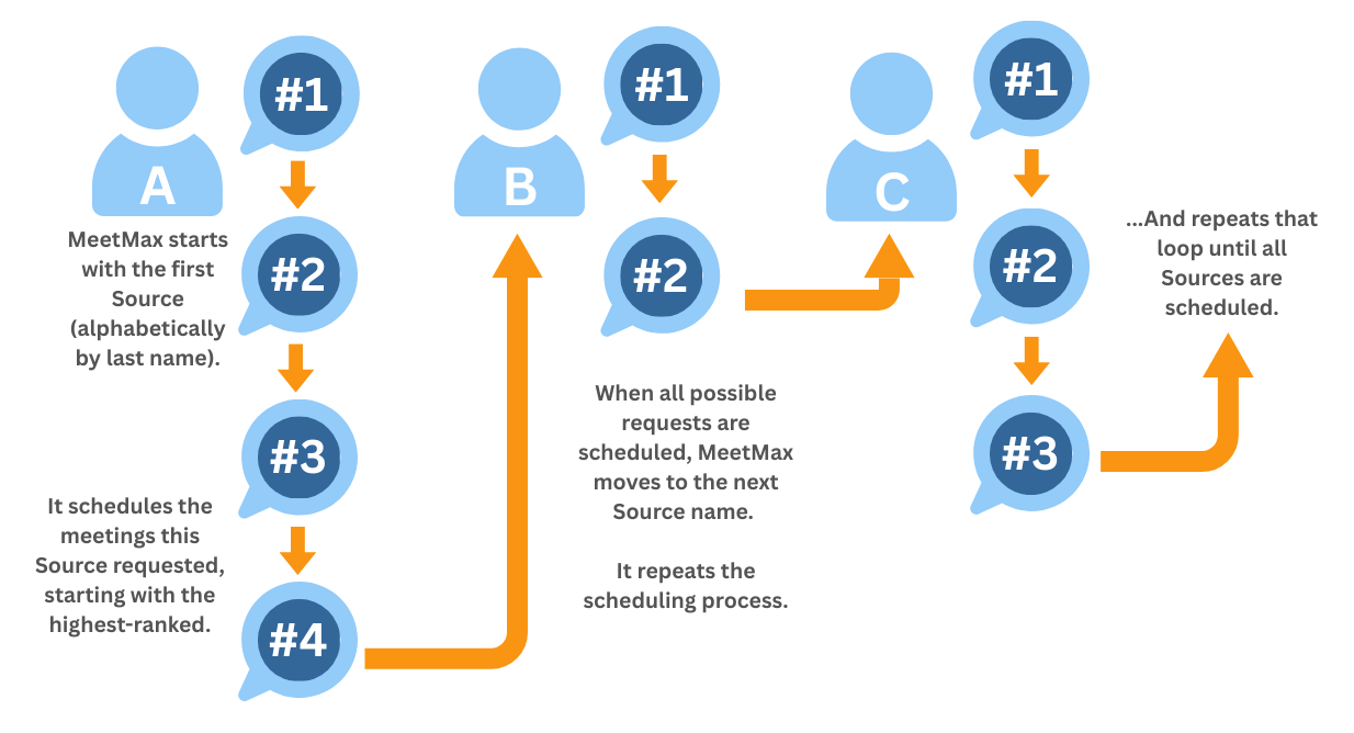 | If your event isn’t using request rankings, MeetMax automatically “ranks” meeting requests in the order they were submitted. If you want to automate scheduling without using meeting requests at all, use our Batch Meeting Pairs feature. |