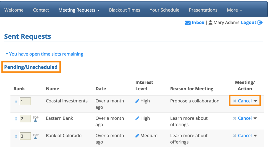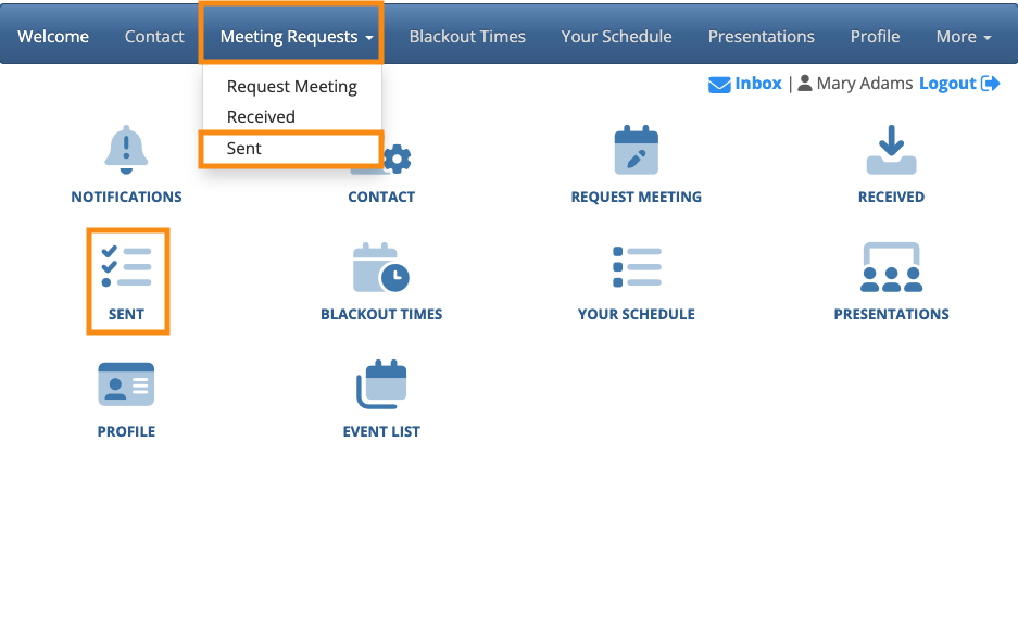 - Step 1. The participant would head to the Meeting Requests Sent page: