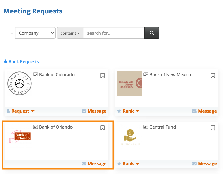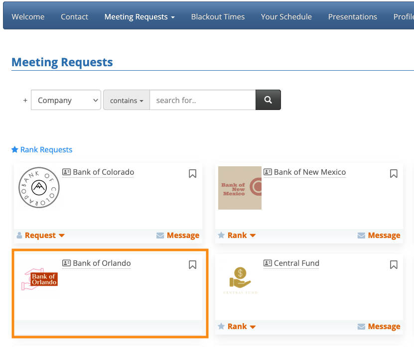 Once you’ve configured the message, participants can log into MeetMax and see it on the Request Meeting page: