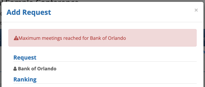 With this setting, participants can still request meetings from anyone. But if their target has reached their maximum, a banner will appear: