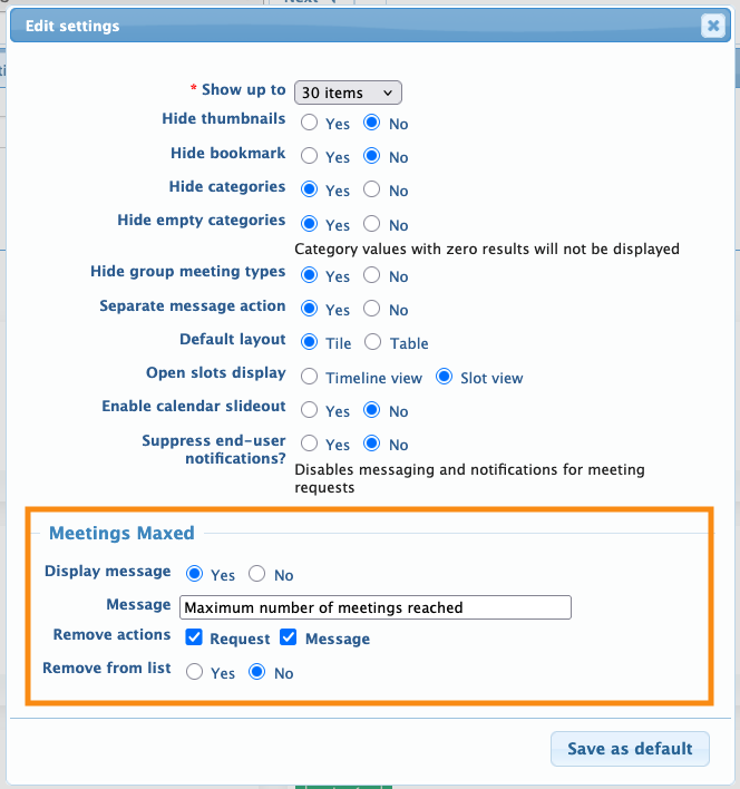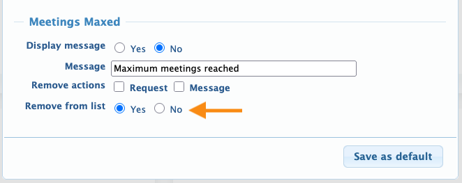 When a participant reaches their maximum, you can also choose to remove them from the Request Meeting page altogether.