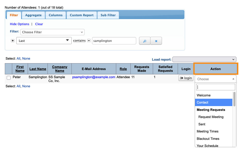 - Step 2. Choose any record - changes you make here will apply to everyone. Use the Action menu to choose Request Meeting: