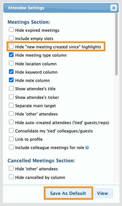 - Step 4. In the Attendee Settings pop-up, make sure Hide “new meeting created since” highlights is unchecked.