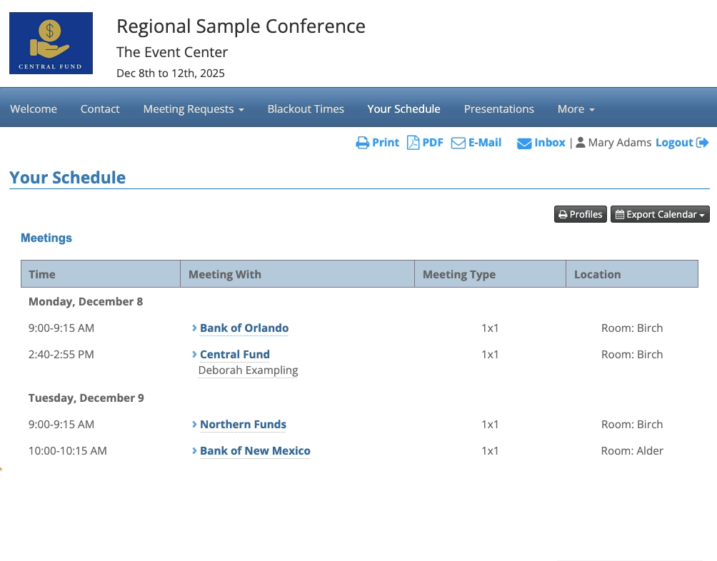 A logged-in Attendee sees something similar on their Your Schedule page.