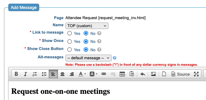 Let’s add a Message to the Attendee invitation. In this example, we’ll add a welcome message.