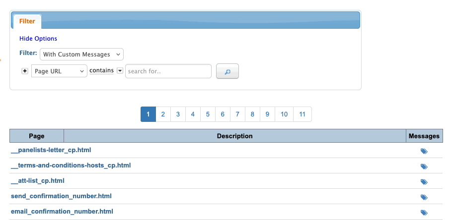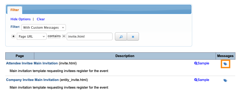 - Step 2. On the Messages page, set the Filter to With Custom Messages. That will display only the Messages our team has set up for your event: