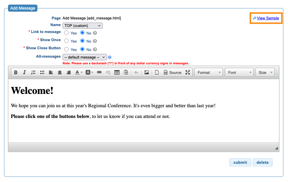 - Step 7. You also have several options for displaying your Message. Hover over the question marks to learn more about each one: