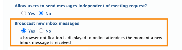 - Step 2. Under Broadcast new Inbox messages, choose Yes: