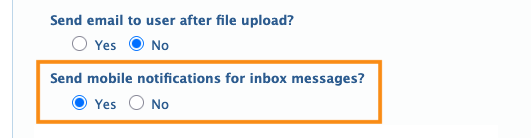 - Step 2. Under Send mobile notifications for inbox messages, choose Yes: