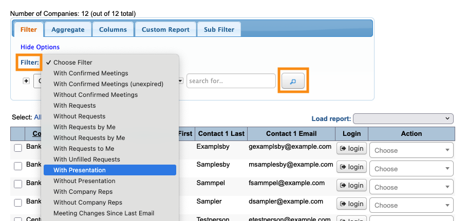 - Step 2. This list shows you all presenters, both Attendees and Companies, in all presentations.