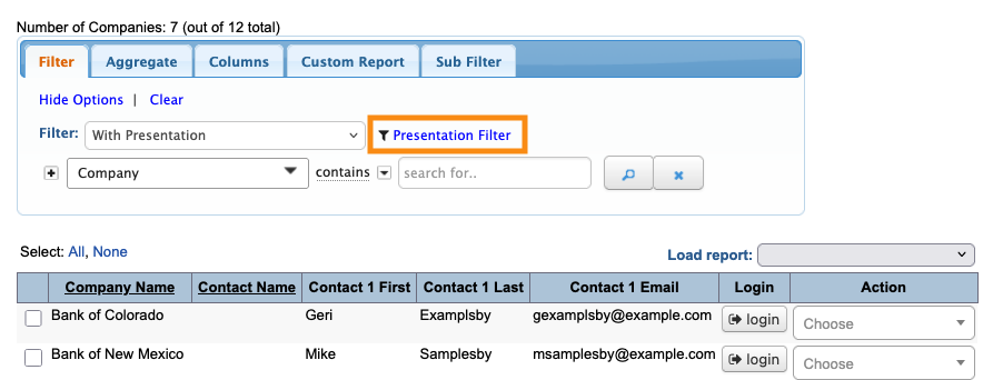 - Sometimes, it’s useful to break this list up by date. Click the Presentation Filter link: