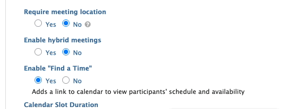 - • If your event is mostly in-person, or a balance of virtual and in-person, leave this setting at the default of No. (Your Hybrid Meeting Rules will then determine location assignments.)