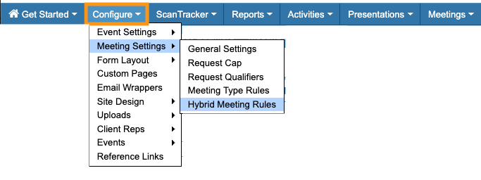 - Step 1. Head to the Configure tab. Choose Meeting Settings, then Hybrid Meeting Rules: