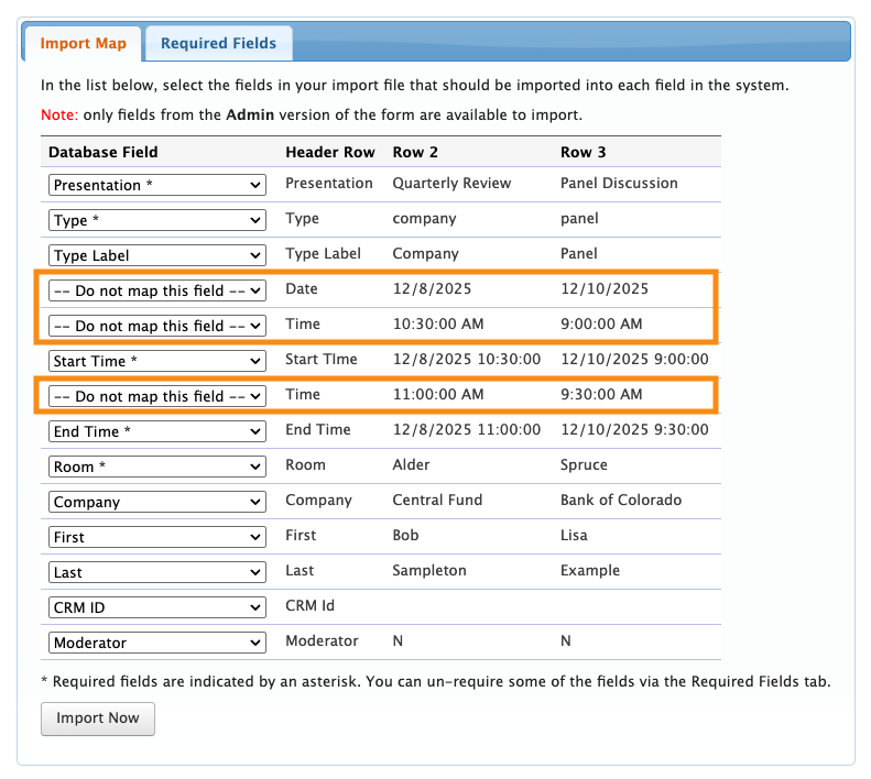 To import presentations into MeetMax, your CSV must contain these two columns: