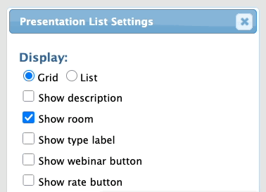 You can customize the Presentations page your participants see. One of these customizations is to display the Type Label for each presentation.