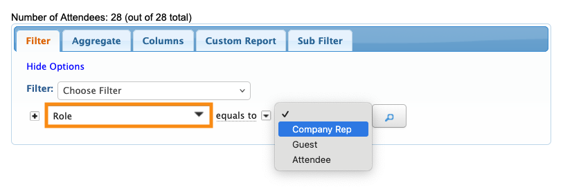 - In the Filter tab, set the Role filter to Company Rep: