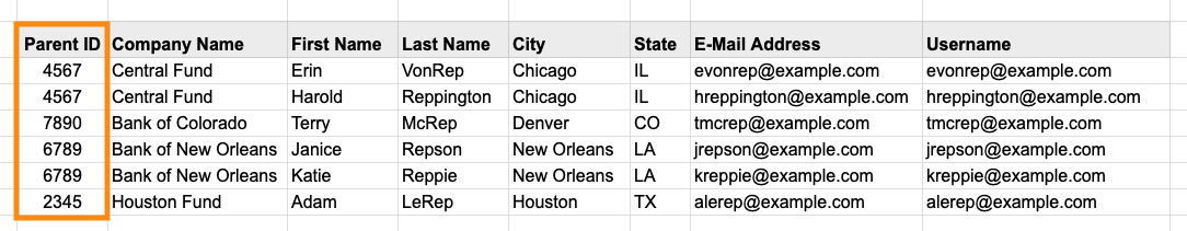 Using a Parent company ID