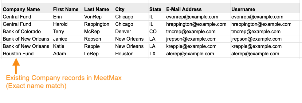 As long as the Company name here exactly matches an existing Company in MeetMax, we’ll be able to pair the records together.