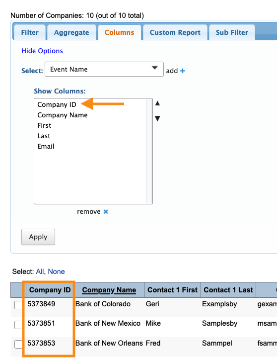 If you’ve integrated MeetMax with your CRM, you can use your own CRM ID numbers here. If not, use MeetMax’s Company IDs.
